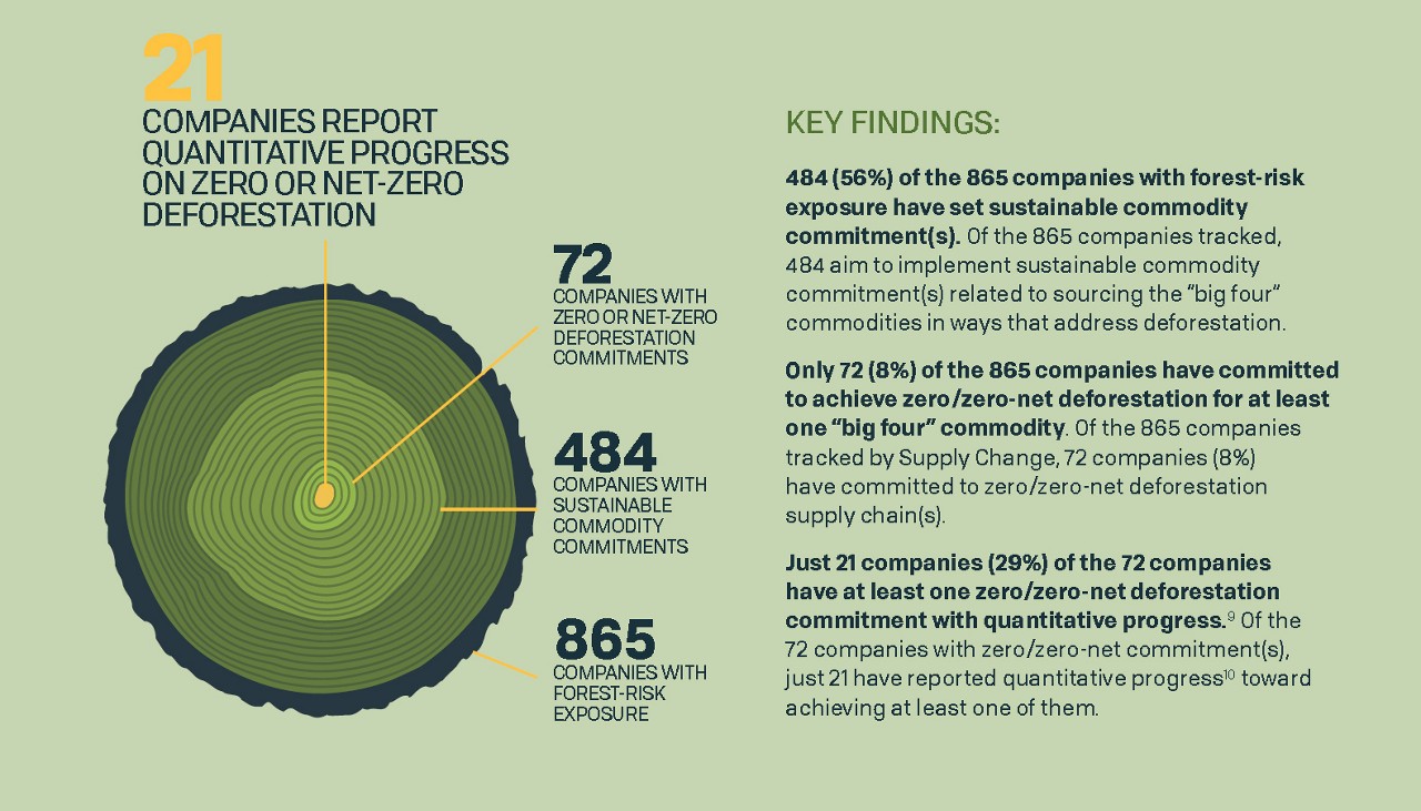 While governments are clearly very important, zero deforestation commitments and supporting actions from companies are critical for turning the issue around. Unfortunately, despite the seriousness of the issues linked to deforestation the New York Declaration on Forests (NYDF) assessment report found that corporate commitments had slowed.4