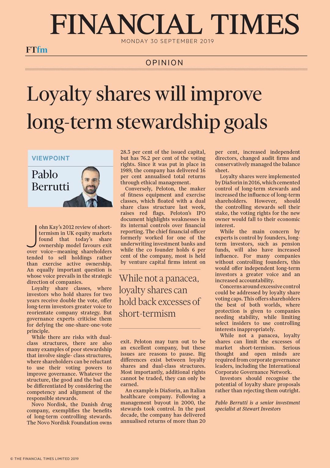 Pablo Berrutti in the Financial Times